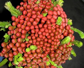 - Sa structure est similaire au berzilia mais avec des cônes plus gros, un feuillage soyeux qui ressemble à un sapinage. - Disponible de la Californie et de l'Australie/ Nouvelle–Zélande en quantité toujours limitée.